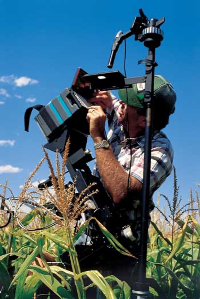 Современные гиперспектральные исследования: Уолтер Бауш, исследователь в области управления водными ресурсами из Министерства сельского хозяйства США, проводит измерение белого эталона на кукурузном поле с помощью портативного спектрорадиометра ASD PSII. Предоставлено ASD Inc.