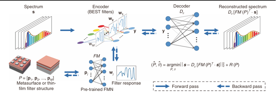Они совместно обучали кривые отклика фильтров (в качестве спектрального кодировщика) и сеть декодера для реконструкции спектра. Благодаря развитию индустрии производства тонкоплёночных фильтров они смогли разрабатывать разнообразные функции отклика фильтров, оптимальные для декодера.