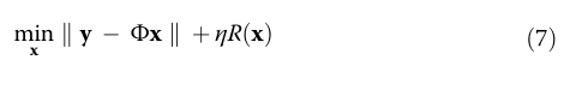Термин R обозначает «приоритет» (regularizer) — регуляризатор, который определяется на основе априорных знаний о входной сцене x (например, её разрежённость — sparsity, то есть малое количество ненулевых элементов).