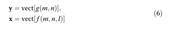 После векторизации мы получаем векторизованные термины: y ∈ ℝ^MN — векторизованный термин измерения; x ∈ ℝ^MNL — векторизованный спектральный куб.