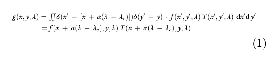 где дельта‑функция описывает спектральное рассеивание, вносимое дисперсионным элементом (таким как призмы или дифракционные решётки).