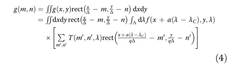 1. Сначала она встречает кодированную апертуру с коэффициентом пропускания T(x,y,λ).