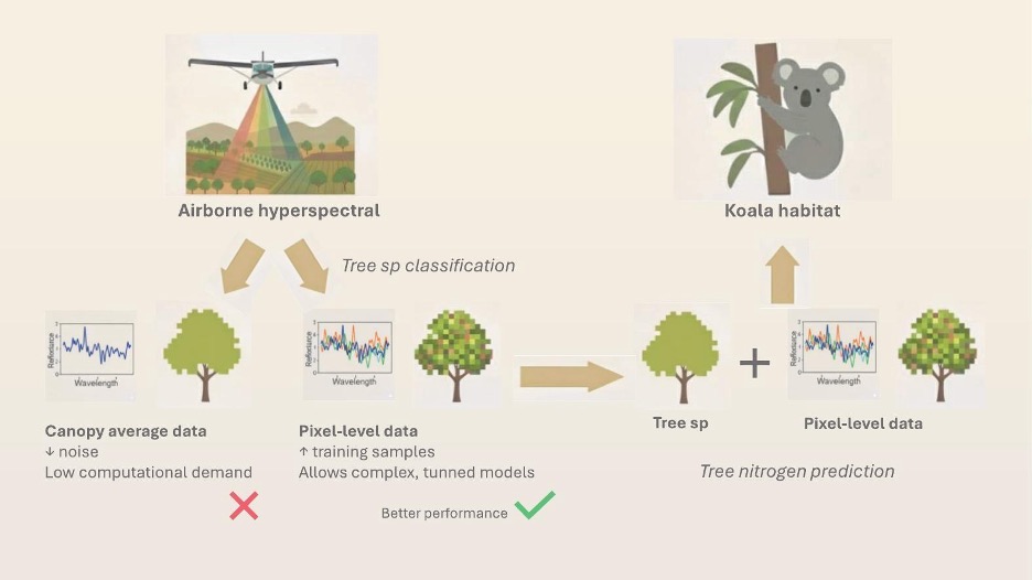 Важно, что мы продемонстрировали: обучение на уровне пикселей существенно улучшает обобщающую способность модели для прогнозирования содержания азота, а явный учёт видов деревьев дополнительно повышает эффективность модели. В совокупности это даёт масштабируемую основу для картирования качества среды обитания коал».